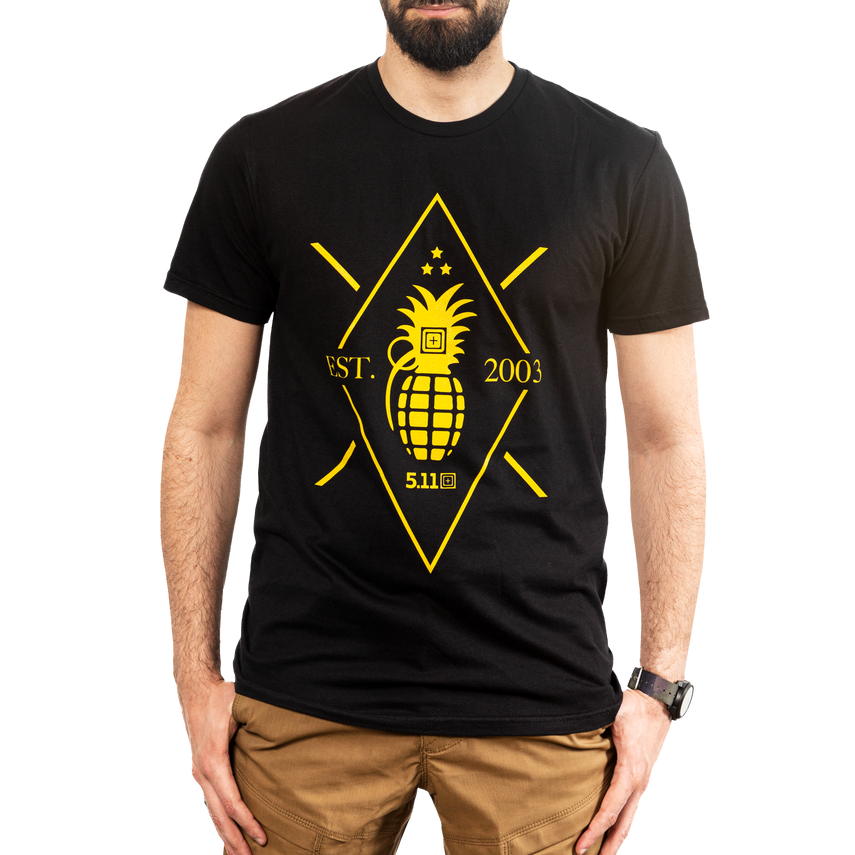 5.11® Emea Pinpple Grnd S/S Tee wykonana jest z wysokiej jakości tkanin i barwników, aby zapewnić długotrwały komfort, dzięki czemu jesteś - Always Be Ready.